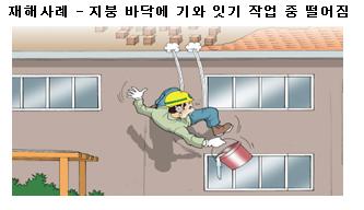 지붕 기와잇기 작업시 근로자가 지붕 슬라브 단부(처마)에서 떨어짐 위험이 있는 경우레