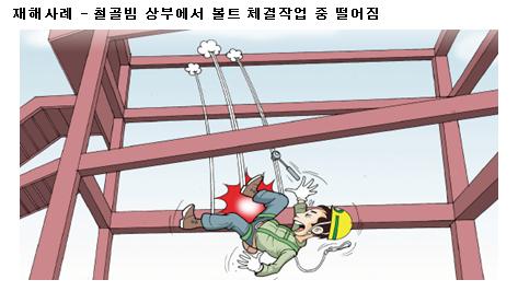 떨어질 위험이 높은 철골빔(13.4m) 위에서 볼트 체결작업을 하면서 떨어짐 재해를 방지하기 위한