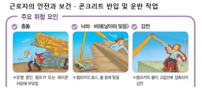 - 펌프카, 레미콘 트럭 등은 유자격자가 운전하고, 운전자는 유도자의 신호를 준수한다.