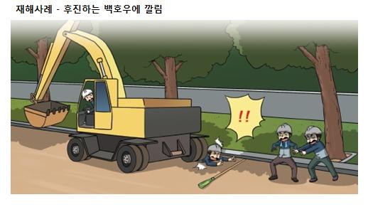 - 백호우 후진 시 후방주시 철저, 백호우 후진 경보음 설치