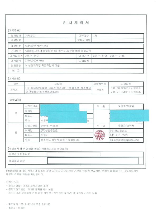 (주)성진플랜트 "Aseptic 증설라인 1층 배수로 집수정 배관 매설공사"