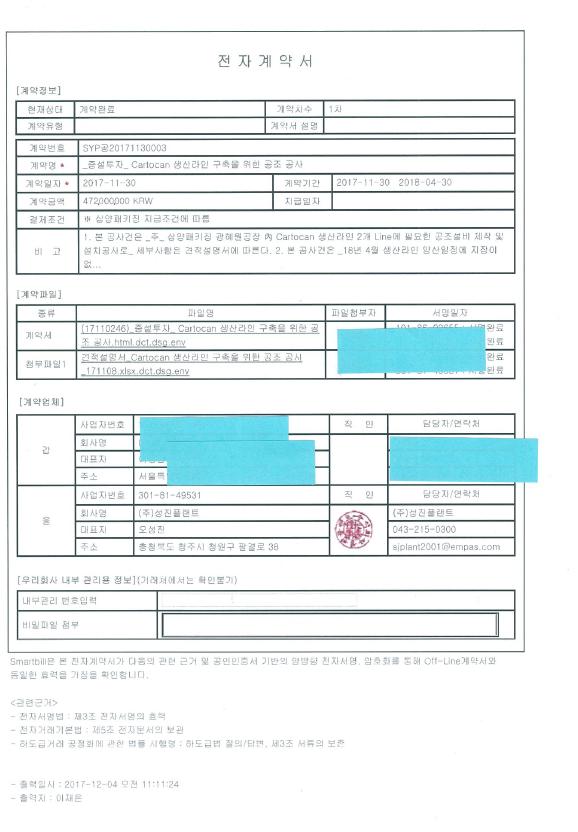 (주)성진플랜트 "Cartocan 생산라인 구축 공조 공사"