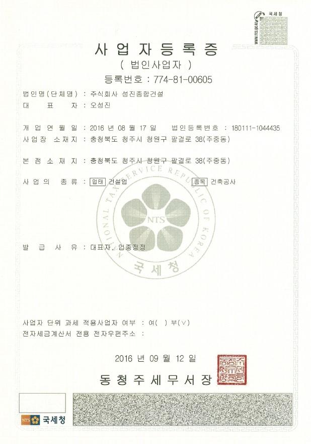 [공지] (주)성진종합건설 등록