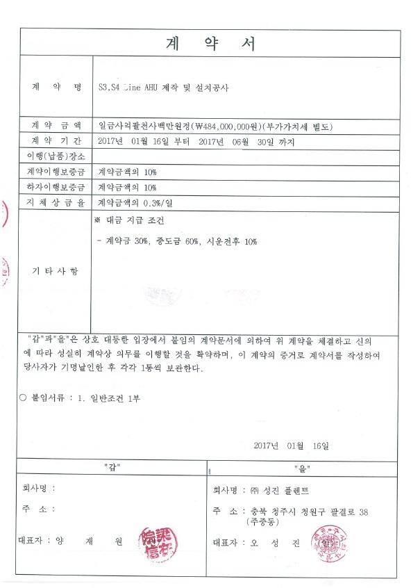 경축 W S3, S4 Line AHU 제작 및 설치공사 계약완료!
