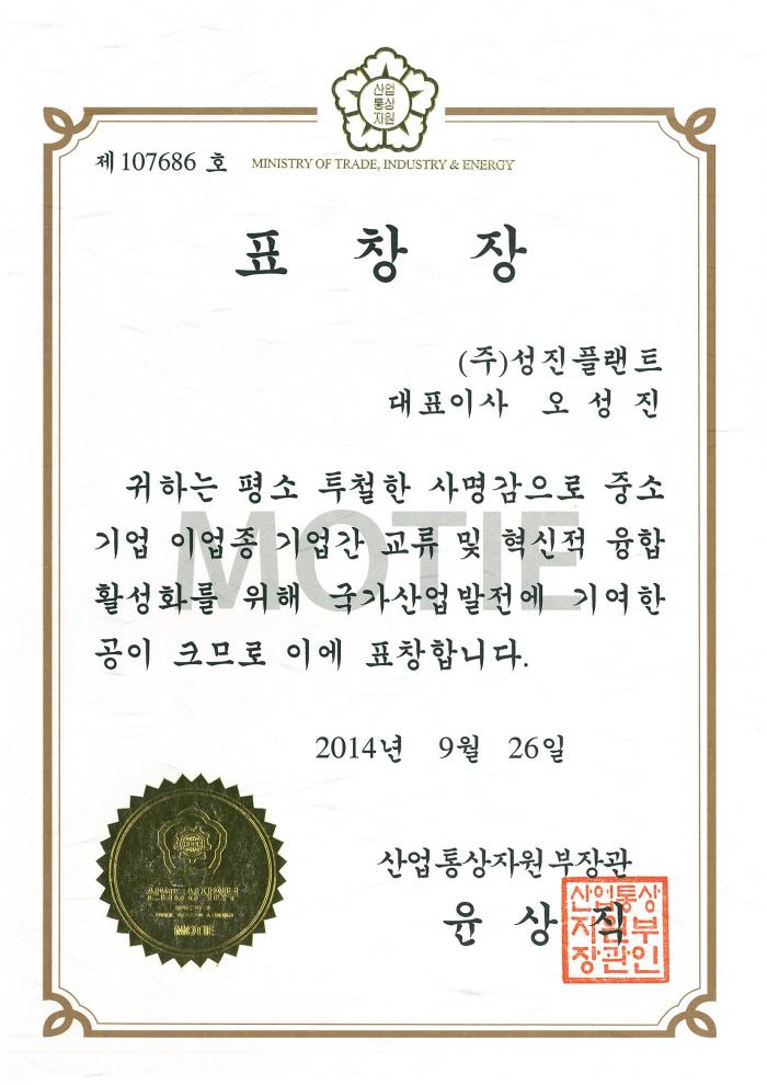 저희 (주)성진플랜트 대표님 께서 산업통상자원부 장관상을 수상하셨습니다.