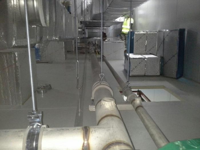 천정 위 CDA, N2, PCW, 포밍 배관 LINE SUPPORT 및 배관 설치