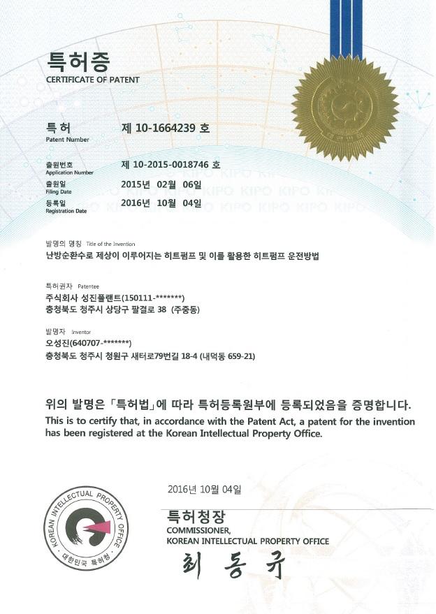 특허증_3 페이지 정보 작성자 댓글 0건 조회 1,181회 작성일 18-09-07 11:28 본문 난방순환수로 제상이 이루어지는 히트펌프 및 이를 활용한 히트펌프 운전방법 특허증 목록 이전글K마크 인증서 18.09.07 다음글특허증_2 18.09.07 댓글목록 댓글목록 등록된 댓글이 없습니다.